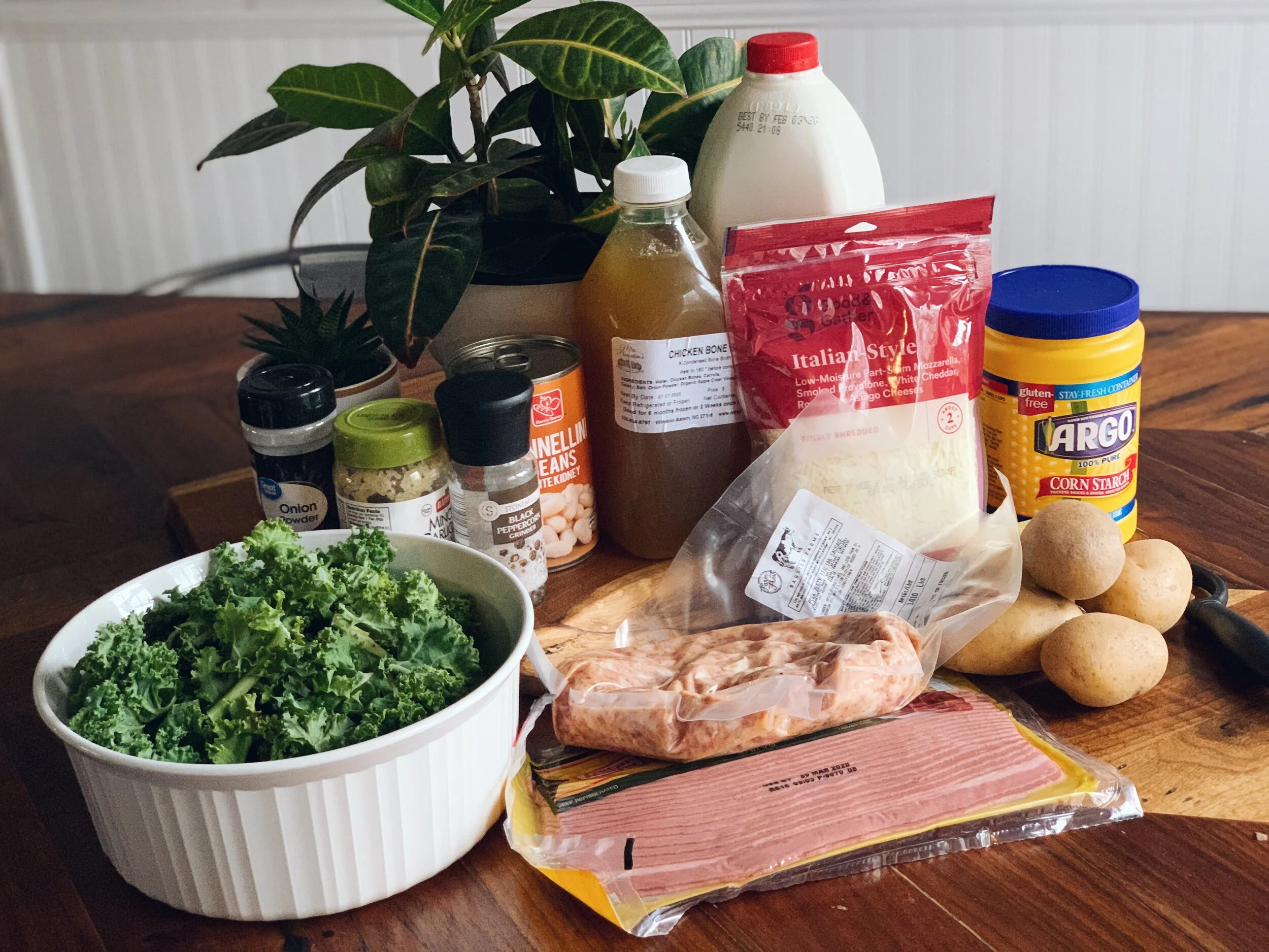 I also want to mention that this is very kid friendly. Probably as many of you know if you follow us on Instagram, we shoot these little “cooking days” at my sister’s house where she is my very cheap(she works for lunch) photographer. With 3 nieces and nephews under foot, believe us when we say that recipes we post are very kid friendly…both easy and quick to make, as well as kid approved in taste. My niece, Darcey, ate 2 bowls of her own, and then promptly came to sit in my lap and finish my bowl! My husband, Levi(the Farmer), also prefers this soup over plain potato soup since it has way more body to it. Have we convinced you to try it yet? We hope so! Lets get started!