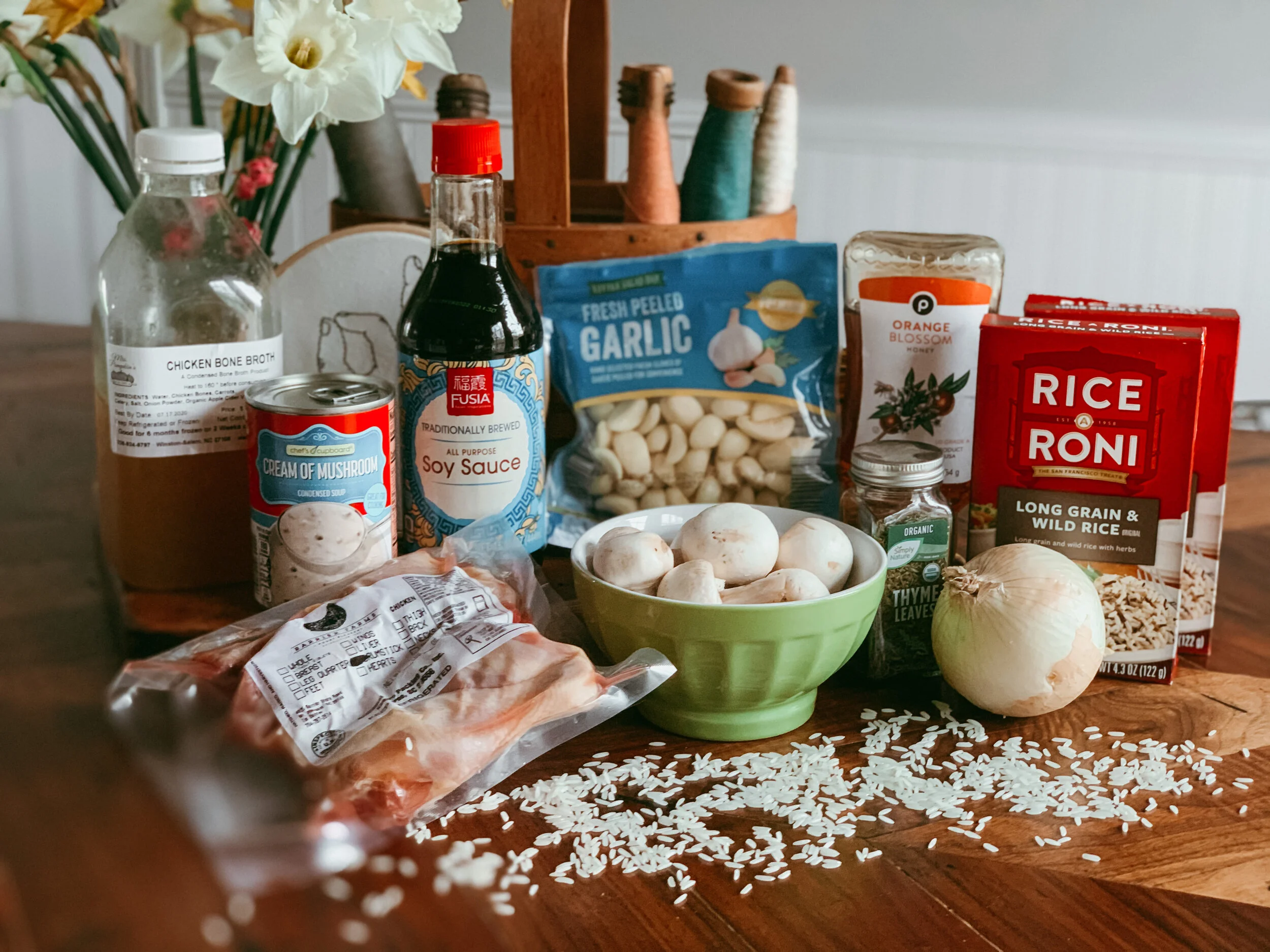 This recipe is a sweet and savory dish, so you may want to adjust the seasonings and honey to your personal taste. I do like the combination down below, and it’s what I’ve stuck with the past couple of times I made it. It’s very comforting, and the rice will be your favorite part! Lets chat about the rice first. The original recipe calls for a 8.1 oz box of Long Grain Wild Rice Mix…that isn't sold in my grocery store! I will add this disclaimer that while experimenting with this recipe and photographing it, the Covid-19 pandemic was just starting so it could just be that they were all out of this size. I’ve gotten around it two ways: 2 smaller boxes(4oz) OR 1 small box mixed with one cup of plain jasmine rice. The only difference is in the amount of seasoning you will be adding to your dish, and since I’ve made it both ways, I can assure you it’s good each way! I find I like adding the jasmine rice just because I always have it on hand and don’t want to have to buy 2 boxes of the other! Pick whatever you want to try and go with it. It’s going to be good either way! After that way too long explanation of RICE….lets do this!